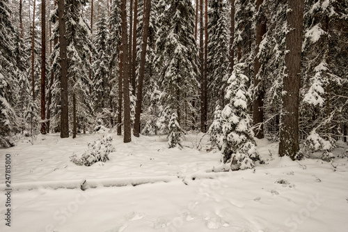 © Martins Vanags, Fototapeta premium snow covered trees in winter forest.
