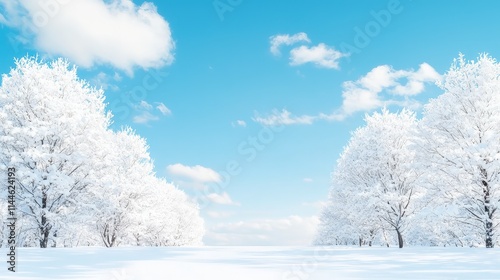 © kinara art design, Obraz premium Snow-covered trees under a bright winter sky.