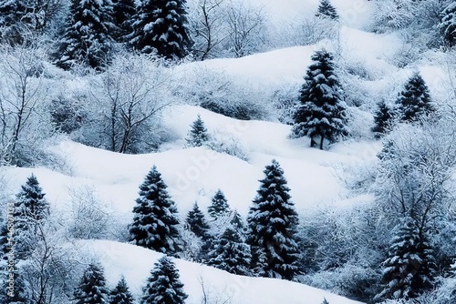 © DigitalFury, Obraz premium Snow Covered Trees Winter Landscape Seamless Texture Pattern Tiled Repeatable Tessellation Background Image