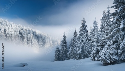 © MSohail, Naklejka premium Snow-covered trees with mist