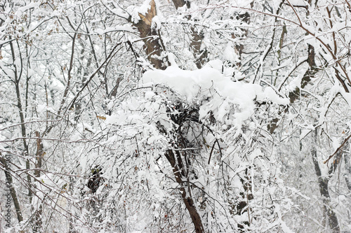 Fototapeta premium Snow covered trees woods forest bare winter white