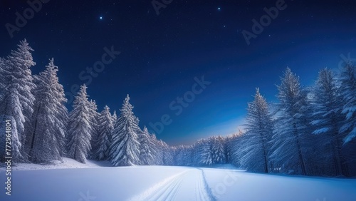 © Yliya, Fototapeta premium snow-covered winter night forest, New Year's card, texture