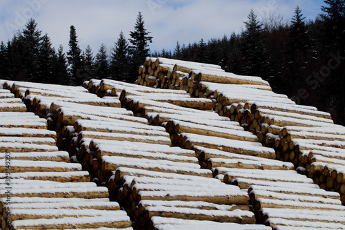 © Jiri, Fototapeta premium Snow covered wooden logs