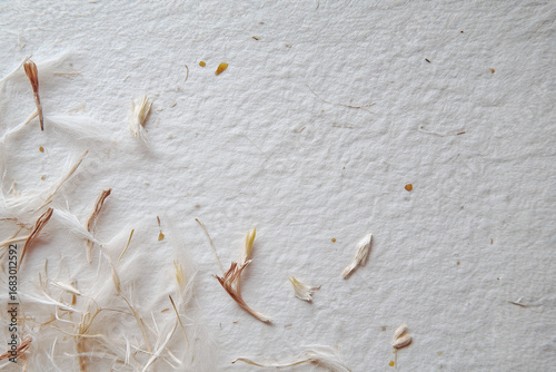 Obraz premium Snow entangled in washi paper fibers and fluff.