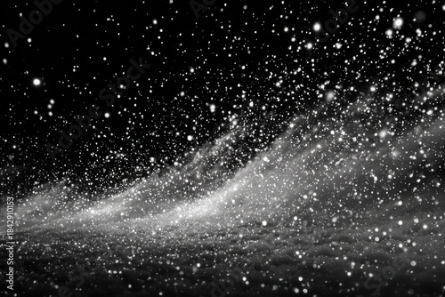 © Azadart, Obraz premium Snow falling gently on dark clouds during winter night creating a snowy scene above the landscape