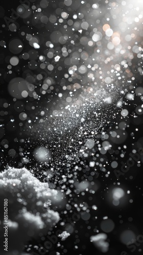 Obraz premium Snow falling on against a dark night background.