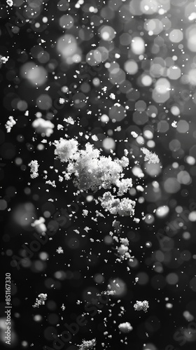 Fototapeta premium Snow falling on against a dark night background.