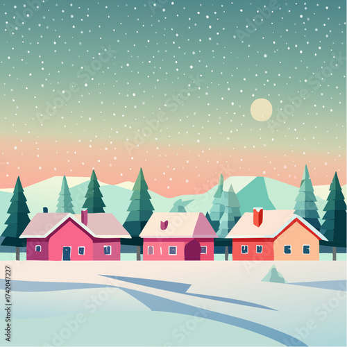 Naklejka premium Snow falling over small winter village