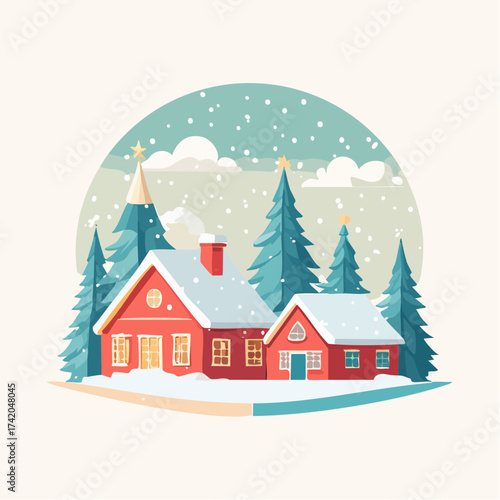 Naklejka premium Snow falling over small winter village