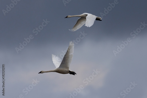 © ranchorunner, Fototapeta premium Snow geese flying in beautiful light, , seen in the wild in a North California marsh