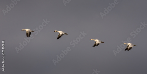 © Manuel Lacoste, Obraz premium Snow geeses flying in formation
