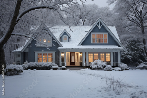 © Golden House Images, Naklejka premium Snow in front of house in winter.