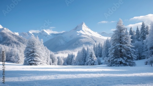 © ArtificialHorizons, Obraz premium Snow-laden trees in the mountains with a white peak in the background