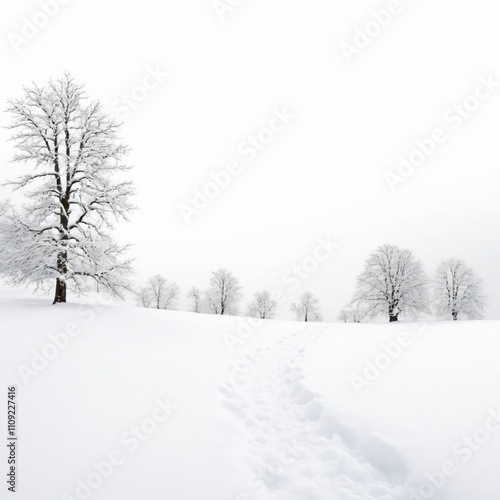 © Meenurajput, Fototapeta premium Snow landscape isolated on white background