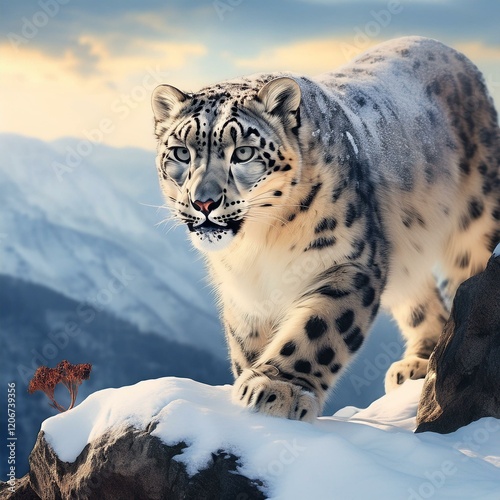 © laiba, Obraz premium snow leopard on the rock