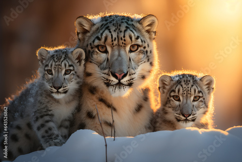 Obraz premium Snow leopard (Panthera uncia) with cubs