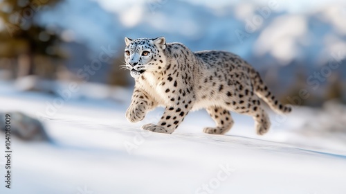 Naklejka premium Snow Leopard Prowling in Winter Mountain Landscape