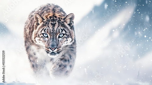 Obraz premium Snow leopard prowling through a frosty, mountainous landscape, Snow Leopard,...