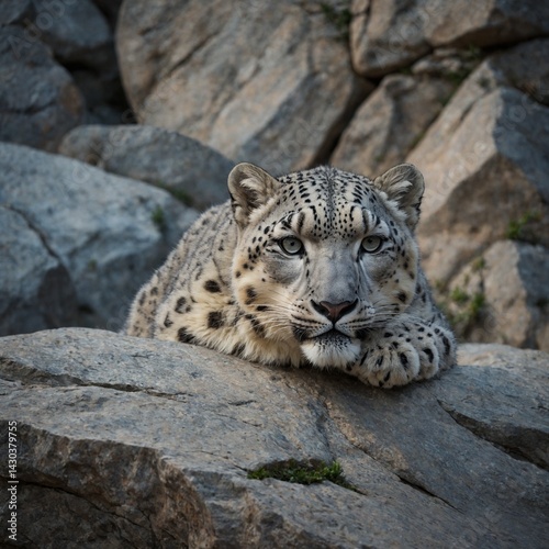 © Muhammad, Fototapeta premium Snow Leopard Resting on a Rocky Ledge