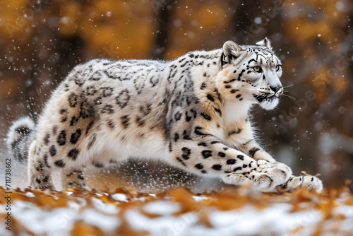 © suriya, Naklejka premium Snow Leopard running in snow.