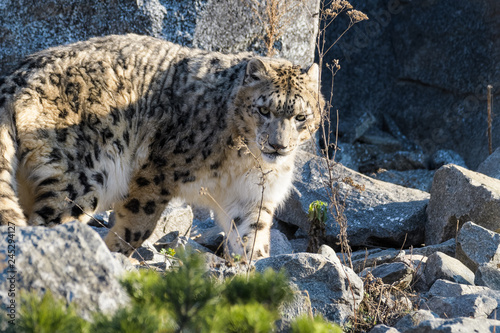 © Thorsten Spoerlein, Naklejka premium Snow leopard walking around in rocky terrain