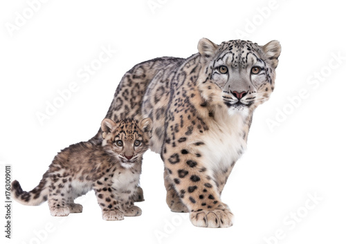 © PhotoFolio Finds, Fototapeta premium snow leopard with cub on transparent background.