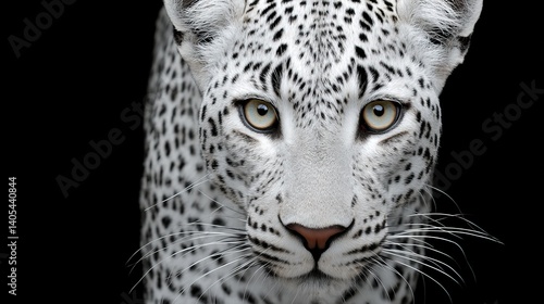 Naklejka premium Snow leopard with white fur and black spots in side profile facing left with...