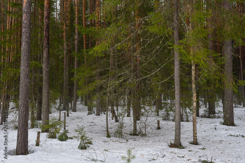 Naklejka premium Snow melting in forest