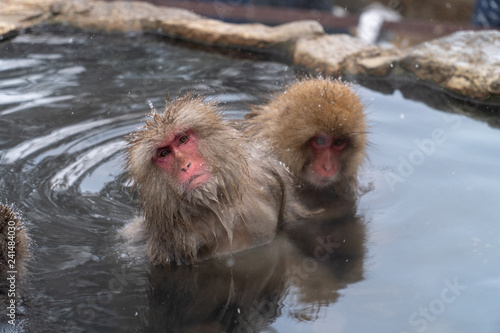 © gtlv, Fototapeta premium 温泉でリラックスしながら毛づくろいするサル(snow monkey)