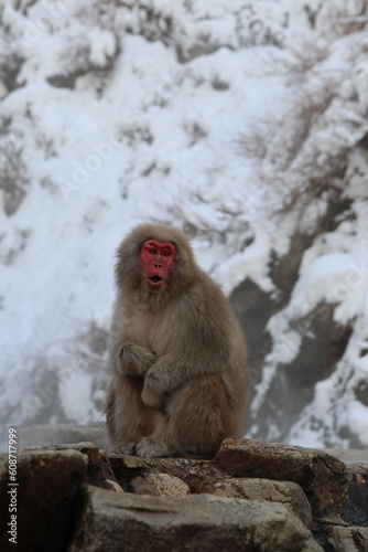 © HanzoPhoto, Naklejka premium Snow monkey by the hot spring in Nagano, Japan