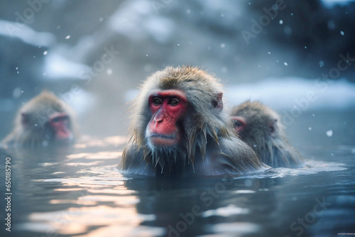 © NuNuHouse, Fototapeta premium Snow Monkey in a natural hot spring