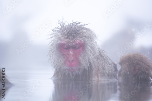 © norikazu, Naklejka premium Snow monkey in hot spring