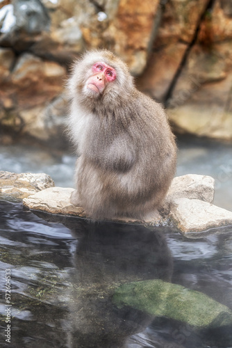 © aaron90311, Obraz premium Snow monkey in Jigokudani monkey park