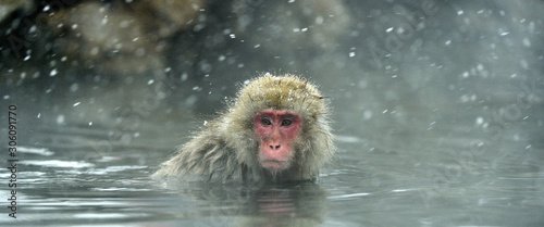 Naklejka premium Snow monkey in natural hot spring. The Japanese macaque ( Scientific name:...