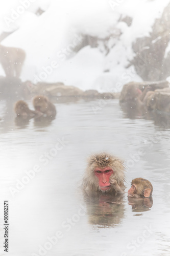 © norikko, Fototapeta premium おふろでいたずら、おさるのこども snow monkey of the outdoor bath