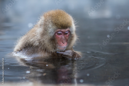 © javarman, Naklejka premium Snow monkey or Japanese Macaque in hot spring onsen