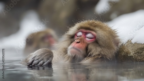 © Endang, Obraz premium Snow monkey relaxing in hot spring