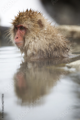 Obraz premium Snow monkey taking a dip in hot spring