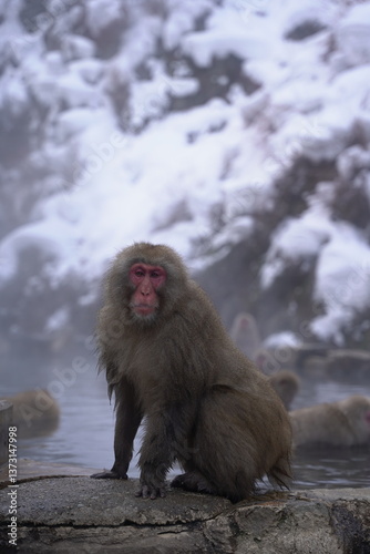 © Jordan, Fototapeta premium Snow Monkeys in Hot Spring 7