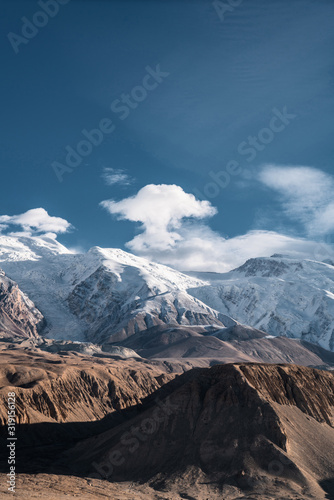 © Jiva Core, Fototapeta premium Snow mountain and rocky canyon located in Xinjiang China pamir plateau.