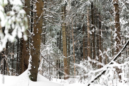 © Djordje, Fototapeta premium snow mountain forest trees. winter forest background