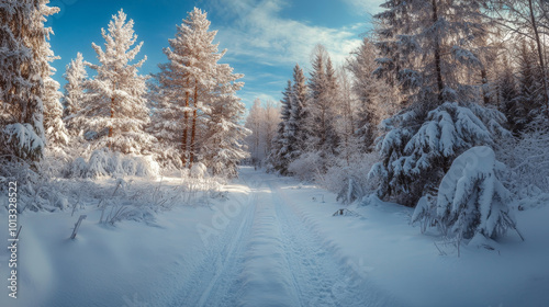 Fototapeta premium snow scene, environment, snow, cold, nobody, tree, sky, ice, winter, terrain,...