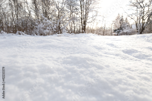 © mdyn, Naklejka premium Snow texture. Winter background of snow and frost with free space for your decoration