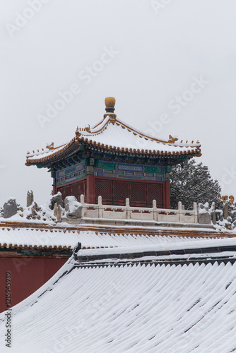© cherryhai, Fototapeta premium snow view of Forbidden City