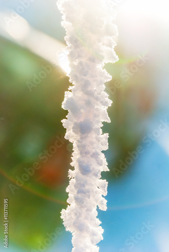 Naklejka premium Snow water icicle detail macro bokeh background backdrop