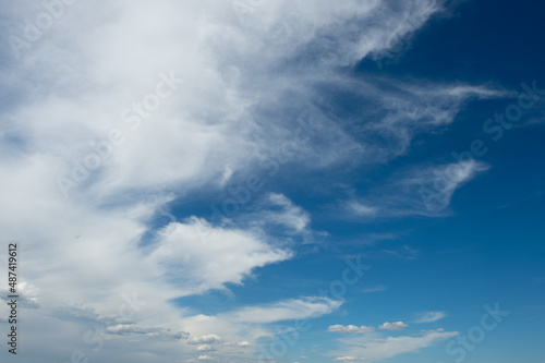 © Алексей Вяткин, Fototapeta premium Snow-white clouds of various types float across the blue sky