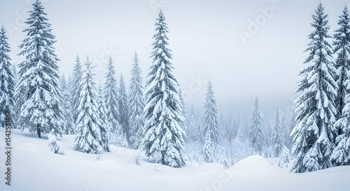 Naklejka premium Snow, Winter, Forest, Snow Covered Pine Forest in Winter Wonderland