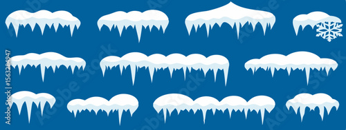 Obraz premium Snow with icicle frames. Snow and snowdrift in flat style. Vector