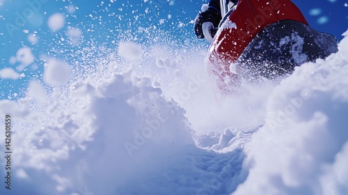 © adiar, Naklejka premium Snowboarder carving fresh powder