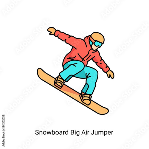 Fototapeta premium Snowboarder catching some air performing a stunt on a snowboard illustration